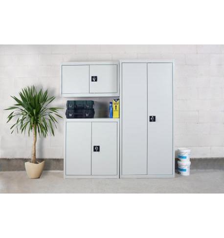 Armario multiusos metalico de color gris y las puertas grises. Con 2 puertas y 4 estantes con capacidad de carga de 75 kg cada uno, carga certificada a punto de flexi¢n. Se entrega desmontado. Las dimensiones del armario (alto x ancho x fondo) son: 1800x600x400 mm. Manipulaci¢n sin riesgo, no contiene aristas de corte. Con recubrimiento epoxi poliester antirayaduras e ign¡fugo. Producto fabricado en Espa¤a.
