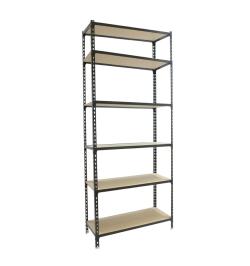 Estantería metálica sin tornillos con aglomerado, de color ANTRACITA/MADERA.Tiene 6 estantes. Las dimensiones de esta estantería son: 2500x900x400 mm. Y tiene una capacidad de carga de 150 kgs, certificamos a punto de flexión, no de rotura. No se tambalea y no tiene aristas de corte.Fabricado en España y se monta rápido siguiendo las instrucciones.