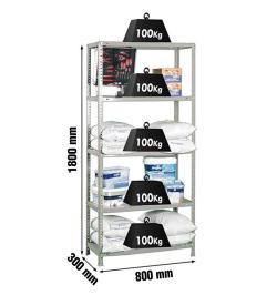 Estantería metálica con tornillos de color GRIS con capacidad de carga por estante de 100 kg. El número de estantes es 5 y las medidas (alto x ancho x fondo) son 1800x800x300 mm. Producto español, calidad europea, podrás encontrar las intrucciones de montaje en su interior o en este enlace: https://www.youtube.com/watch?v=qmx57bCt7qc. Medidas en uso del producto: 1800x810x310 mm
