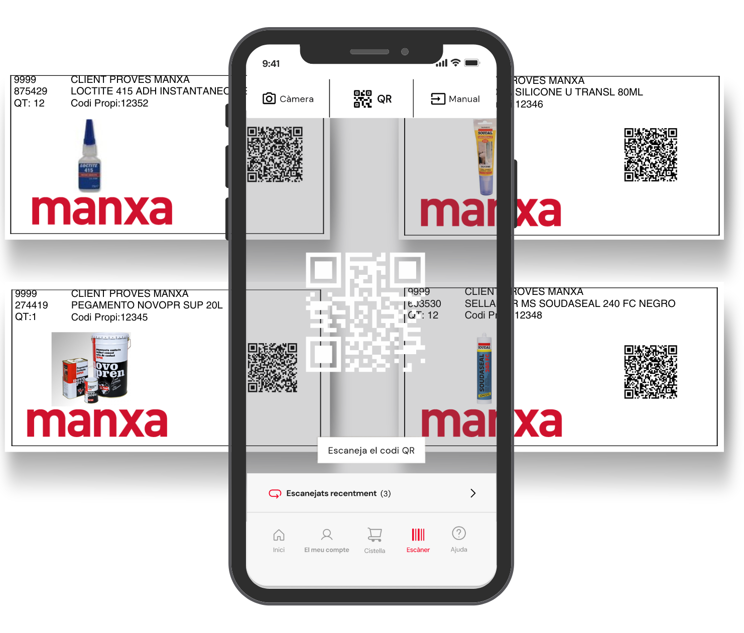 o bé panells amb les etiquetes QR perquè puguis fer les comandes directament des de l’oficina o des de la fàbrica,