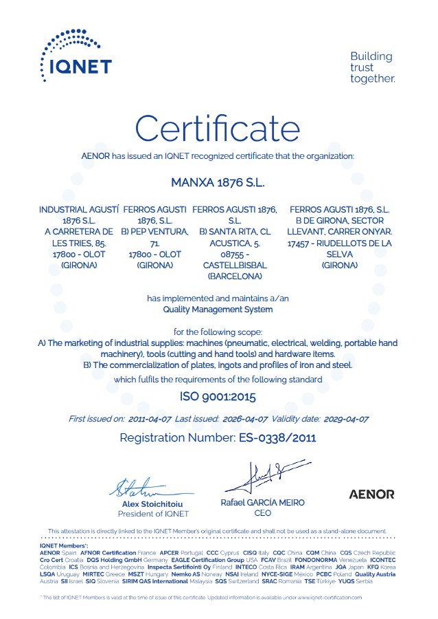 Para Manxa tener la Certificación ISO 9001:2015 es un orgullo y una responsabilidad. Nos hace progresar continuamente, revisar todos nuestros procesos internos para poder mejorar el rendimiento y dar un excelente servicio y obtener la máxima satisfacción de nuestros clientes. La gestión de la calidad de la empresa ha sido y siempre será una prioridad.