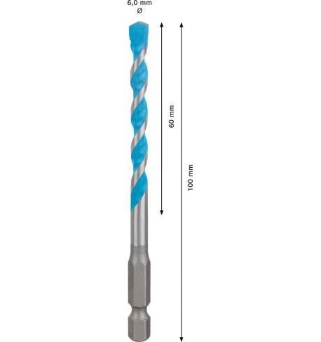 Broca. 6 x 60 x 100 mm. Broca EXPERT HEX-9 MultiConstruction de 6 x 60 x 100 mm : Hasta 5 veces más precisión que una broca Bosch CYL-3.