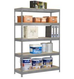 Estantería metálica sin tornillos de color GALVA/MADERA con capacidad de carga por estante de 300 kg. El número de estantes es 5 y las medidas (alto x ancho x fondo) son 2000x1000x600 mm. Incluye bandejas de aglomerado. Producto español, calidad europea, podrás encontrar las intrucciones de montaje en su interior. Medidas en uso del producto: 1975x1100x610 mm