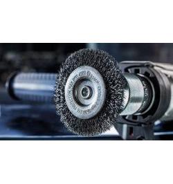 Diseñado para limpiar acero - ¿Necesitas un disco de alambre duradero para limpiar pequeñas superficies, bordes y ranuras? Prueba el disco de alambre PRO Metal clean. Lo hemos equipado con alambre ondulado de alta calidad para garantizar que te ayude de forma eficiente con las tareas de limpieza ligeras, una y otra vez. El disco de alambre PRO Metal clean es un accesorio duradero que querrás tener a mano en tu taller de metal. Lo hemos equipado con alambre ondulado de primera calidad para asegurarnos de que puedas realizar de manera eficiente tareas de limpieza ligeras. El disco de alambre es una excelente opción cuando tienes que limpiar pequeñas superficies, bordes y ranuras de acero. Vástago de inserción cilíndrico compatible con portabrocas de tres mordazas