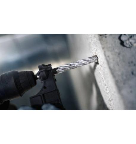 Dura hasta 1,5 veces más que una broca Bosch SDS plus-1 - El hormigón armado es un material común en la construcción de infraestructuras, comercios y casas; los trabajadores como electricistas, fontaneros o instaladores de climatización a menudo necesitan perforarlo. Las broca para martillo PRO SDS plus-5X están diseñadas para esta difícil tarea, con 4 aristas resistentes que no se atascan ni se rompen al golpear el armado. Hecha de una cruz incrustada de carburo de tungsteno de alta calidad, la punta de 4 aristas de la PRO SDS plus-5X ofrece comodidad a los profesionales que tienen que perforar orificios precisos en hormigón armado. La broca para mampostería tiene 4 acanaladuras que evacuan el polvo lejos del punto de impacto y garantizan un rendimiento eficaz y duradero. Se puede usar con todos los martillos perforadores SDS plus