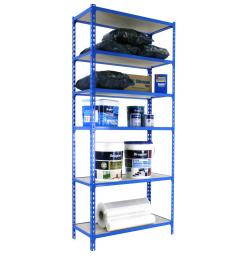Estantería metálica sin tornillos de color AZUL/NARANJA/GALVA con capacidad de carga por estante de 180 kg. El número de estantes es 5 y las medidas (alto x ancho x fondo) son 2000x1000x300 mm. La única estantería que permite poner las bandejas en tres posiciones diferentes. Producto español, calidad europea, podrás encontrar las intrucciones de montaje en su interior o en este enlace: https://www.youtube.com/watch?v=u3t2f21Mm7I. Medidas en uso del producto: 1975x1100x310 mm